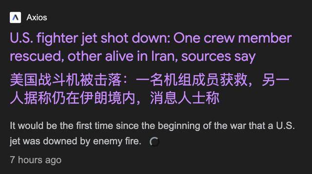 这也是美国和以色列2月28日对伊朗发起军事行动以来,已知首次有美国战机在伊朗境内坠毁,对美军的士气造成了不小的打击。