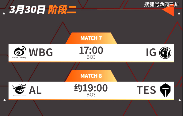 按照赛程安排,3月30日的比赛进入第二阶段,由WBG对阵IG,AL对阵TES带给大家。他们谁能赢下比赛,笑到最后,一起来看一看吧。