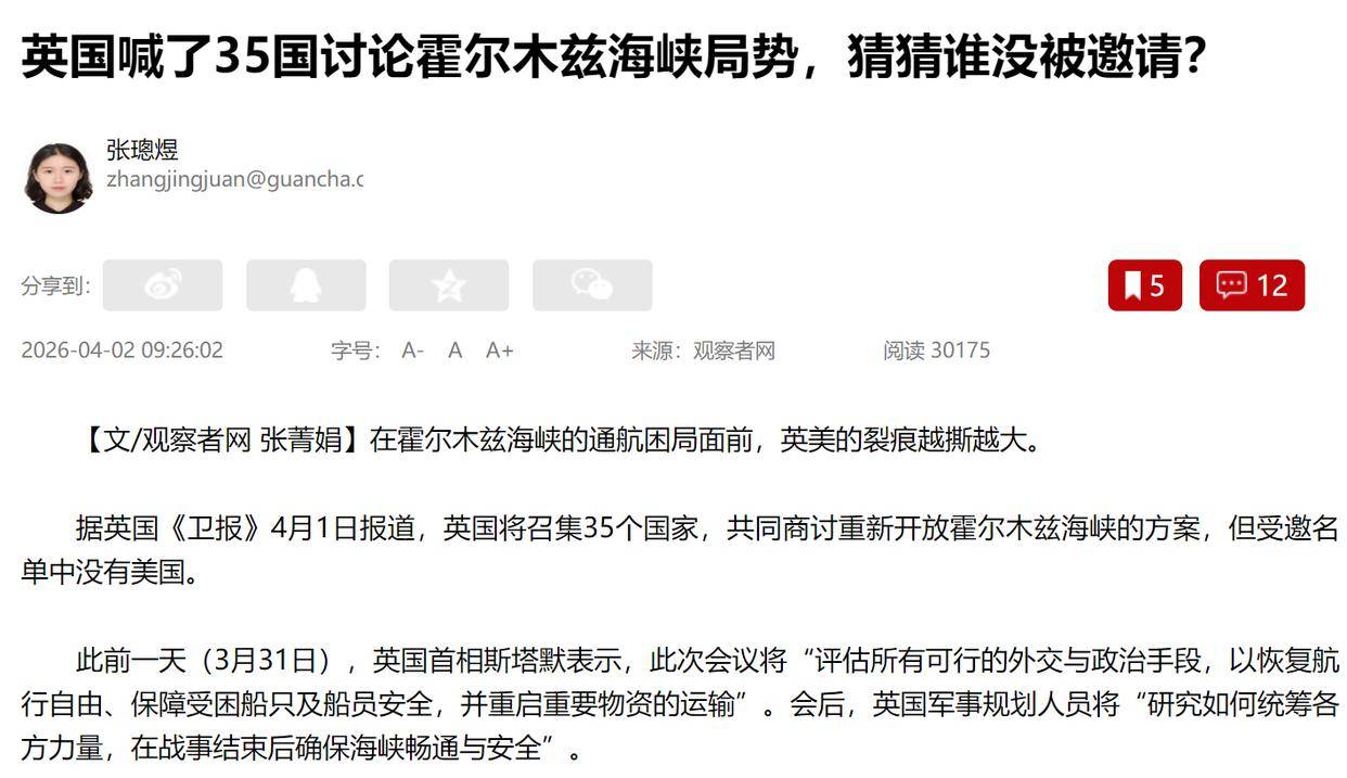 全球能源危机笼罩,各国苦不堪言,而霍尔木兹海峡的持续封锁更是加剧了这一困境。在此背景下,英国召集了三十五个国家的外长,试图通过对伊朗施加极限压力来打破僵局。然而,引人注目的是,美国此次罕见地未获邀请,而法国则出人意料地邀请了中国加入。
